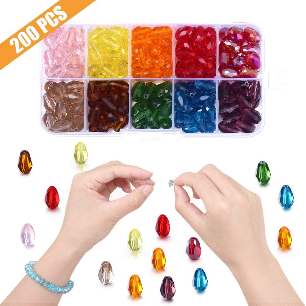 **Product Title:** Teardrop Glass Beads for Suncatcher, Lucky Goddess 200pcs 8×11 mm Faceted Vertical Hole AB Rainbow Crystal Spacer Beads Assortment for DIY Jewelry